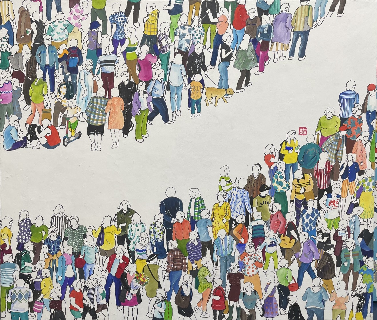 Through observing the countless people in my works, I hope viewers can discover reflections of ‘me,’ ‘you,’ and ‘us.’ I also wish for the pieces to convey moments of joy, happiness, and sometimes a small comfort.