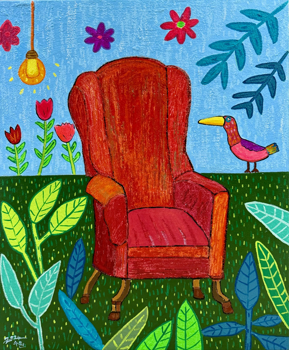 When people don't see hope, they shrink. When we were children, we all fell in love with the world of children's hearts, reminded us of Uncle Kidari, looked at the ridiculous Pierre, and had positive hopes. Now that I'm an adult, I continue to communicate with my childhood through painting. We all go back to our childhood selves with vague memories of hope, scribble with crayons on the canvas, and paint whatever our hands and hearts like, reliving the hopes we had forgotten. We should all be lovely beings who dream of hope, and I hope that the viewers who look at the work with positive energy will have hope and live happily. Ghi chú của nghệ sĩ Shin Suwon Khi mọi người không nhìn thấy hy vọng, họ thu mình lại. Khi còn nhỏ, tất cả chúng ta đều yêu thế giới của trái tim trẻ con, khiến chúng ta nhớ đến chú Kidari, nhìn Pierre lố bịch và có những hy vọng tích cực. Bây giờ tôi đã trưởng thành, tôi tiếp tục giao tiếp với tuổi thơ của mình thông qua hội họa. Tất cả chúng ta đều quay trở lại bản thân thời thơ ấu của mình với những ký ức mơ hồ về hy vọng, viết nguệch ngoạc bằng bút chì màu trên vải, và vẽ bất cứ thứ gì tay và trái tim chúng ta thích, sống lại những hy vọng mà chúng ta đã quên. Tất cả chúng ta đều nên là những sinh vật đáng yêu, mơ về hy vọng, và tôi hy vọng rằng những người xem xem tác phẩm với năng lượng tích cực sẽ có hy vọng và sống hạnh phúc.