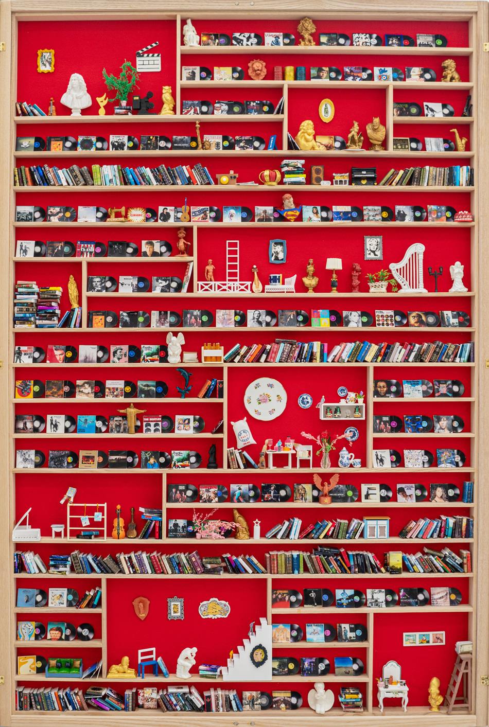 The paintings of artist Hwang Ji-young embody the sensitivity of Korea. They do not confine themselves to the realm of traditional folk painting but instead present a unique world, reinterpreting our traditional art form of folk painting into a global language. In particular, her works are modern yet elegantly expressed, borrowing compositions from Western painting.Hwang, who enjoys capturing moments, may be blending tradition with recent trends in her works. The diverse objects she often uses—ceramics, books, brushes, hanging scrolls, frames, chairs, electric stands, sculptures, flowers and vases, easels, clocks, pistols—are eclectic yet harmoniously combine tradition and modernity. These objects are appropriately arranged against a red background, sparking the viewer's interest and providing a sense of vitality.