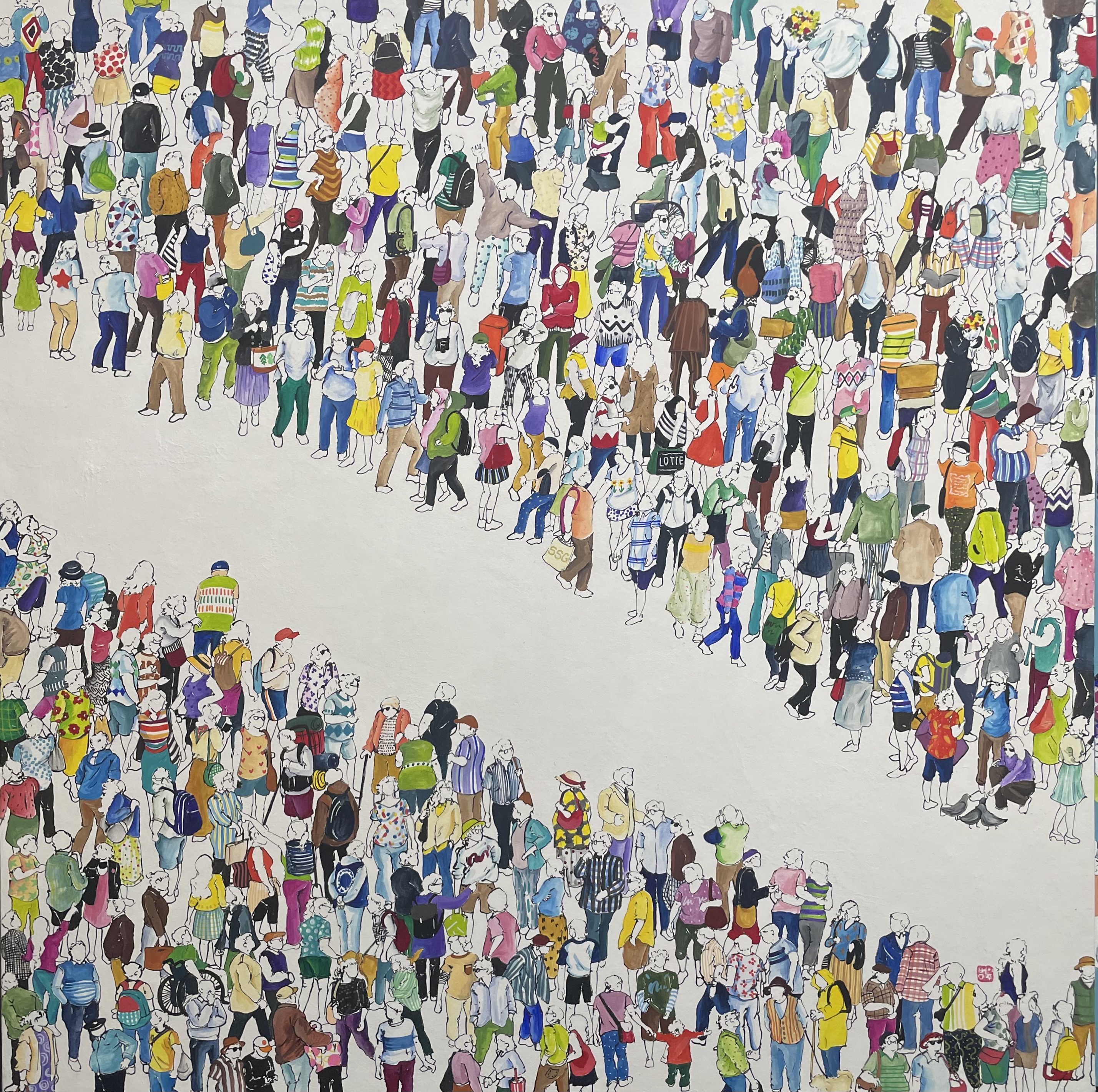 Through observing the countless people in my works, I hope viewers can discover reflections of ‘me,’ ‘you,’ and ‘us.’ I also wish for the pieces to convey moments of joy, happiness, and sometimes a small comfort.
